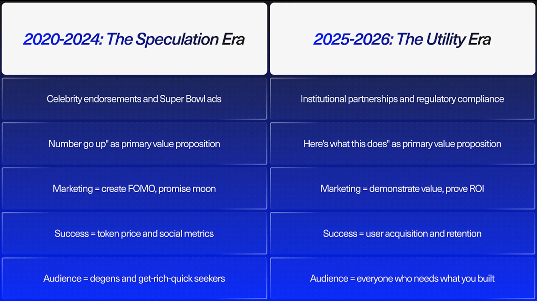 Earlier cycles rewarded visibility. Marketing centered on momentum, social buzz, and price action. Success meant charts going up, followers growing, and engagement spiking.
