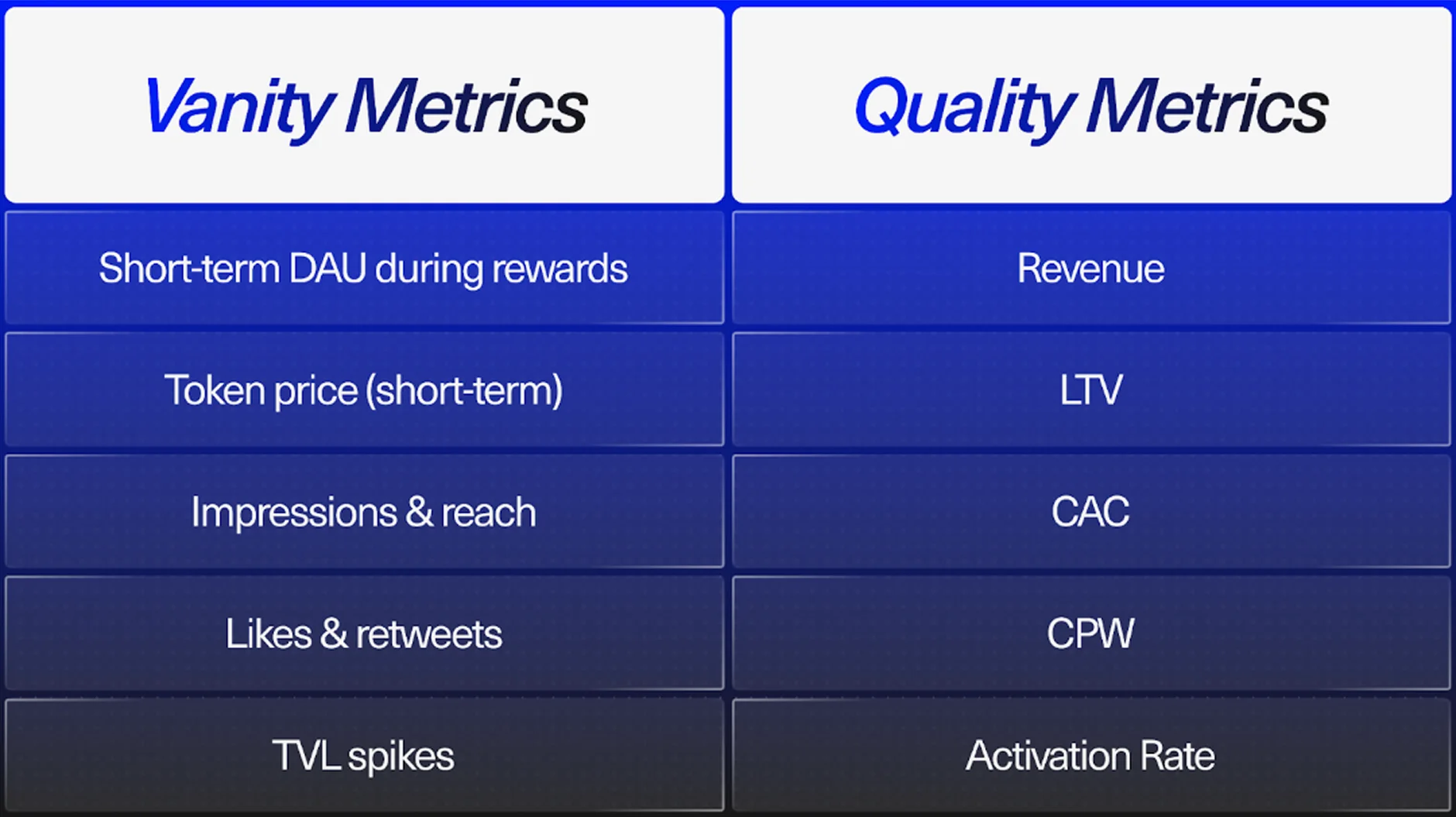 Follower counts, short-term TVL spikes, and large community numbers still fill reports and pitch decks, but fewer teams treat them as reliable signs of growth. The shift away from vanity metrics started after 2023 and accelerated as budgets tightened and expectations rose.