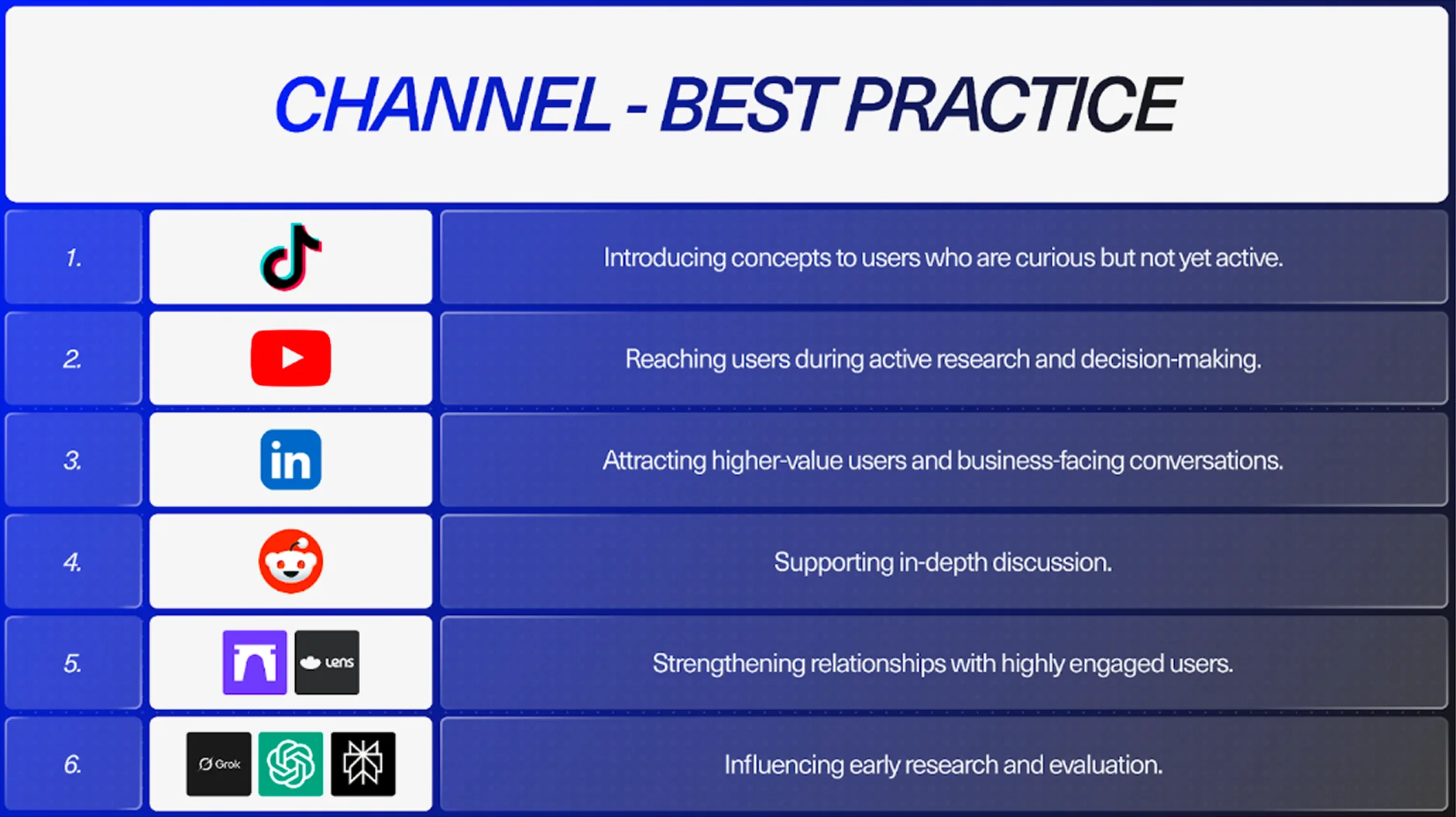 - Shift from broadcasting to participation. Highlight real usage, user feedback, and community contributions. User stories, organic discussion, and shared milestones carry more weight than polished marketing messages.