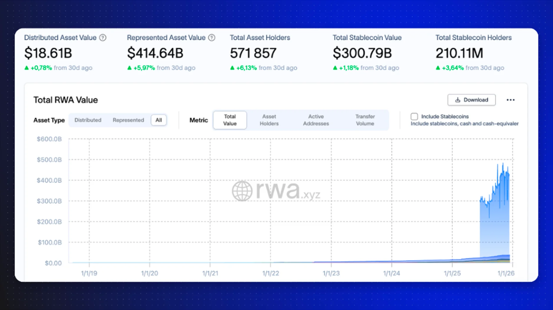 Tokenized real-world assets expanded rapidly through 2024 and 2025. Market size estimates rose sharply as traditional asset managers entered the space. Growth came primarily from institutional participation rather than retail speculation.