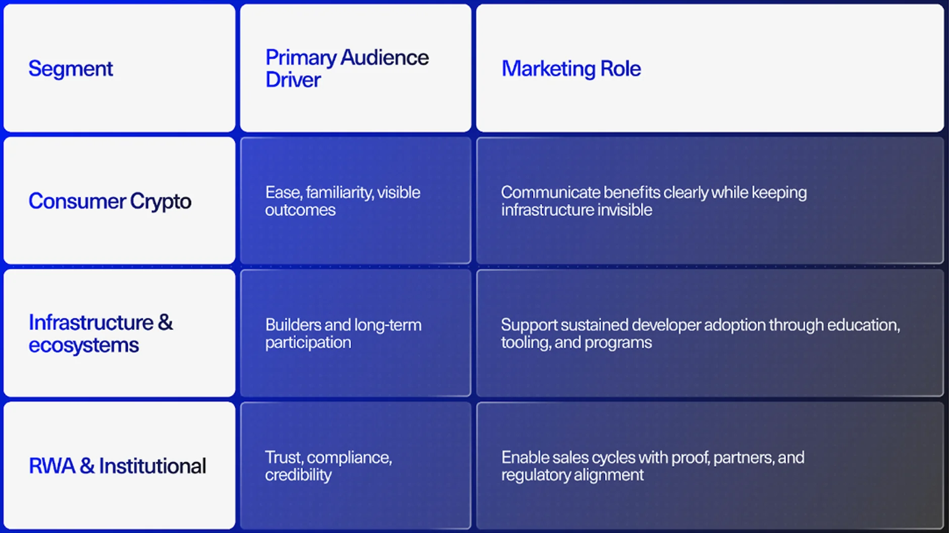 Crypto marketing didn't change overnight. It shifted gradually, driven by how people began using products rather than how they talked about them. As crypto expanded into payments, savings, gaming, and infrastructure, the audience stopped behaving like a single group with shared motivations.