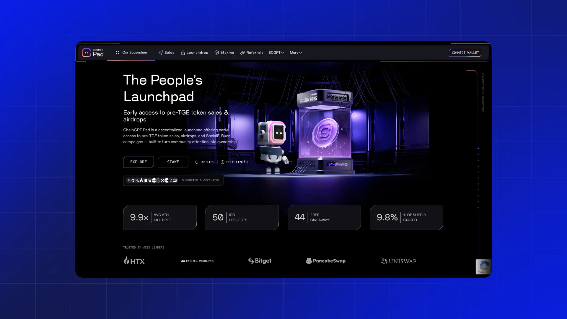 2. ChainGPT Pad is a decentralized fundraising platform that incubates and launches innovative projects in GameFi, AI, infrastructure, DeFi, and more, leveraging sophisticated Web3 and AI technologies.