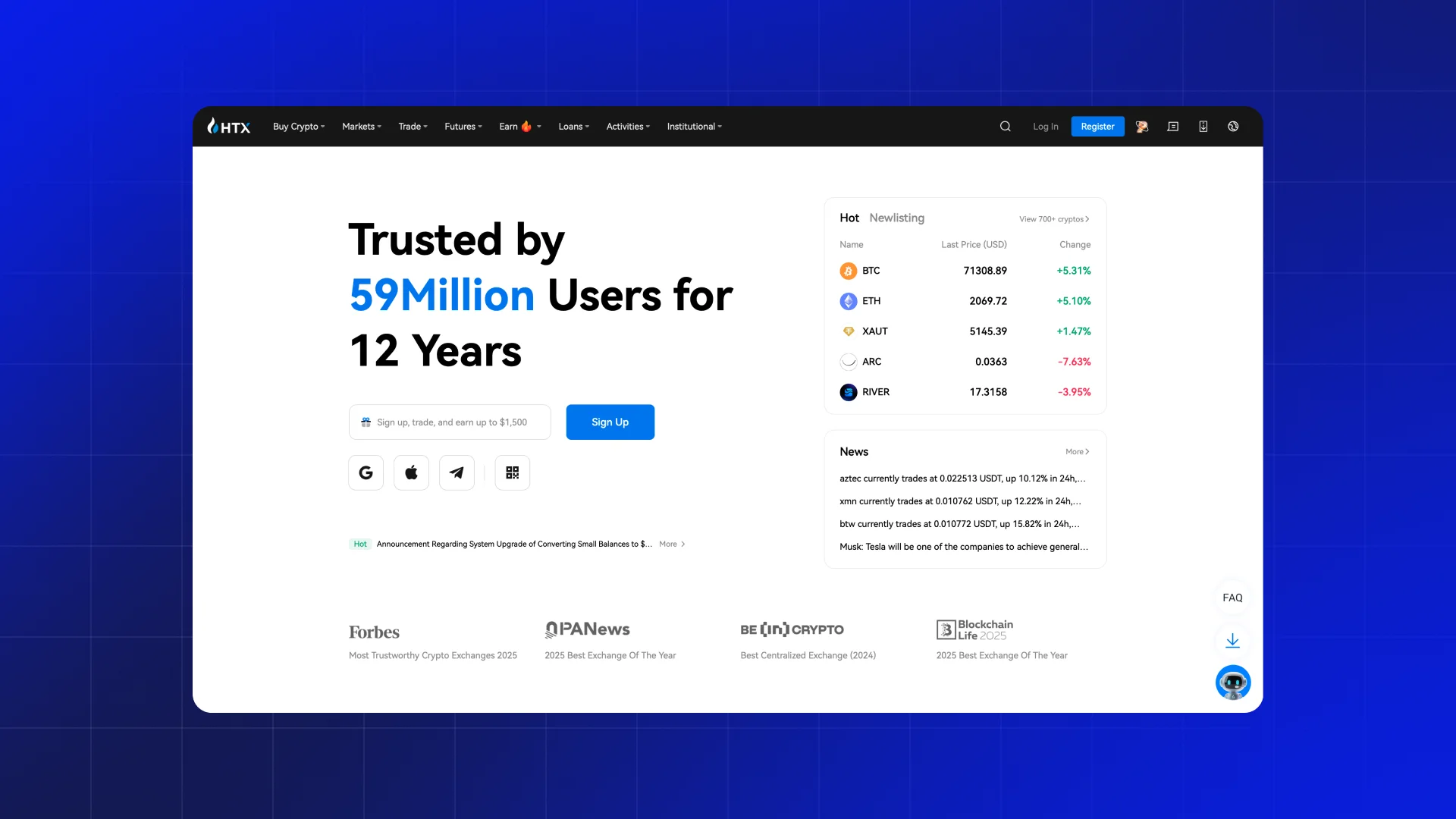 6. A leading global exchange offering a vast array of crypto products, HTX is recognized for its robust security measures and a wide selection of crypto pairs.