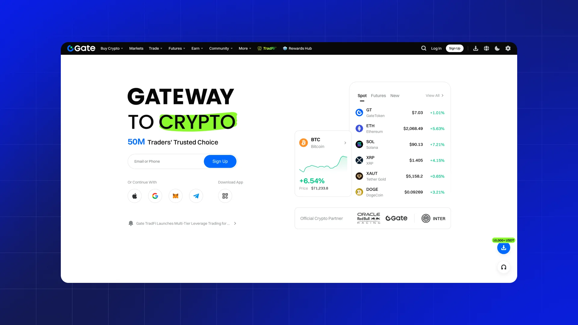 7. Gate.io offers a large selection of crypto and advanced financial services like margin trading and derivatives, noted for its liquidity and security.