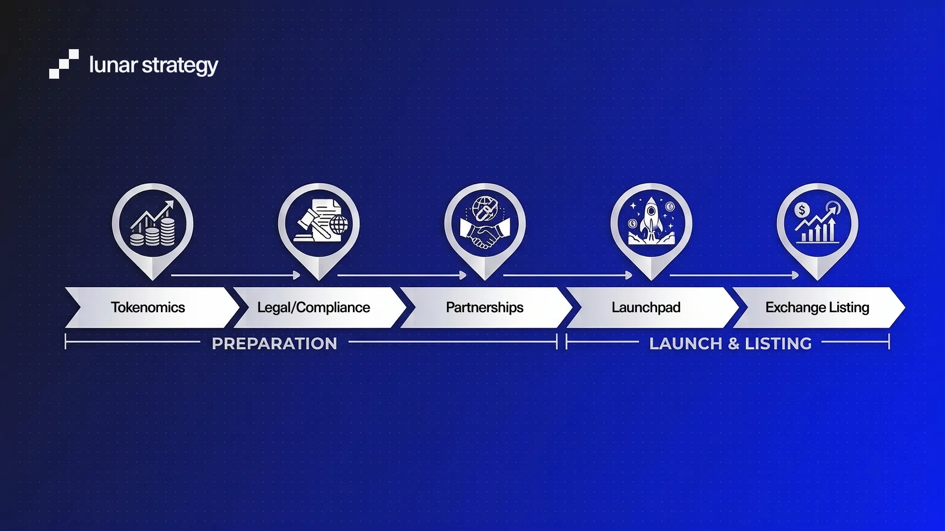 A token launch strategy is a comprehensive plan covering tokenomics design, partnerships, token launch marketing, and exchange listings to successfully introduce a crypto token to market. In 2026, a successful launch requires 3–6 months of planning across the five pillars below.