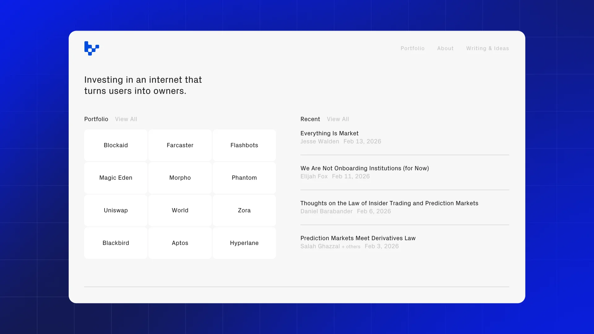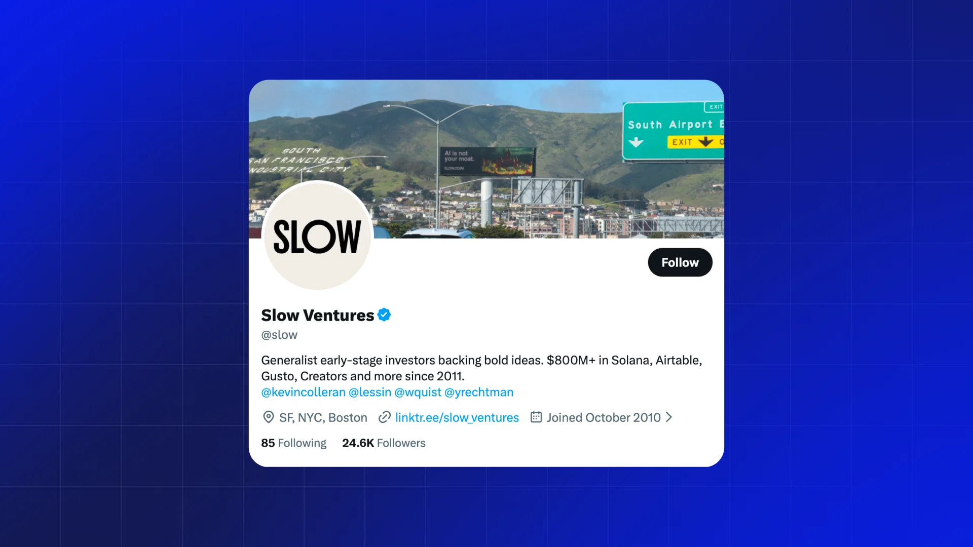 Backed by early PayPal employees, Slow Ventures has invested in Over 10 crypto and blockchain startups including Coinbase, Rippling, and Harbor. Manages over $250 million in assets.