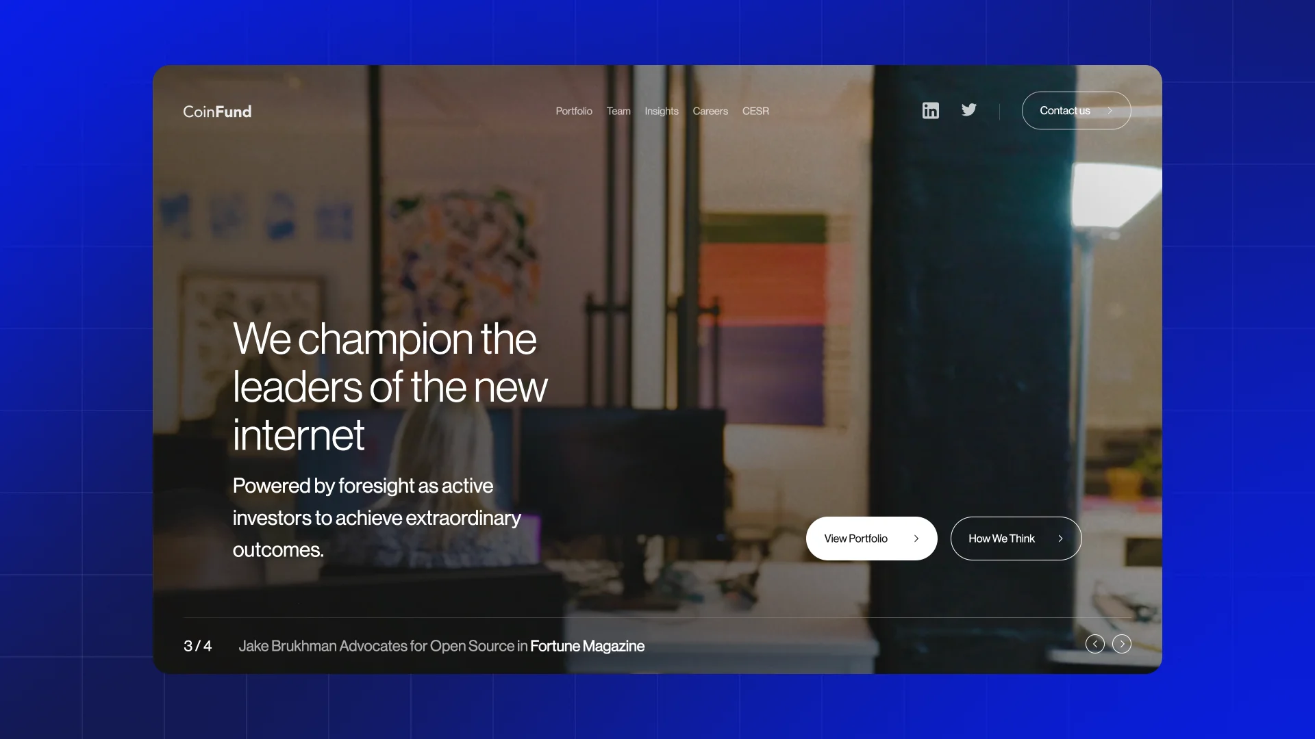 Founded in 2015 by Jake Brukhman, Julia Spiva, and Aleksandr Bulkin, CoinFund is a Berlin-based blockchain technology venture capital firm focusing on early-stage investments in cryptocurrency, DeFi, NFTs, Web3, and open metaverse startups and protocols. With over 60 companies in its active portfolio, including prominent projects like Solana, Audius, Livepeer, and NEAR Protocol, CoinFund offers capital and strategic and technical guidance to entrepreneurs building the decentralized future across Europe and North America.