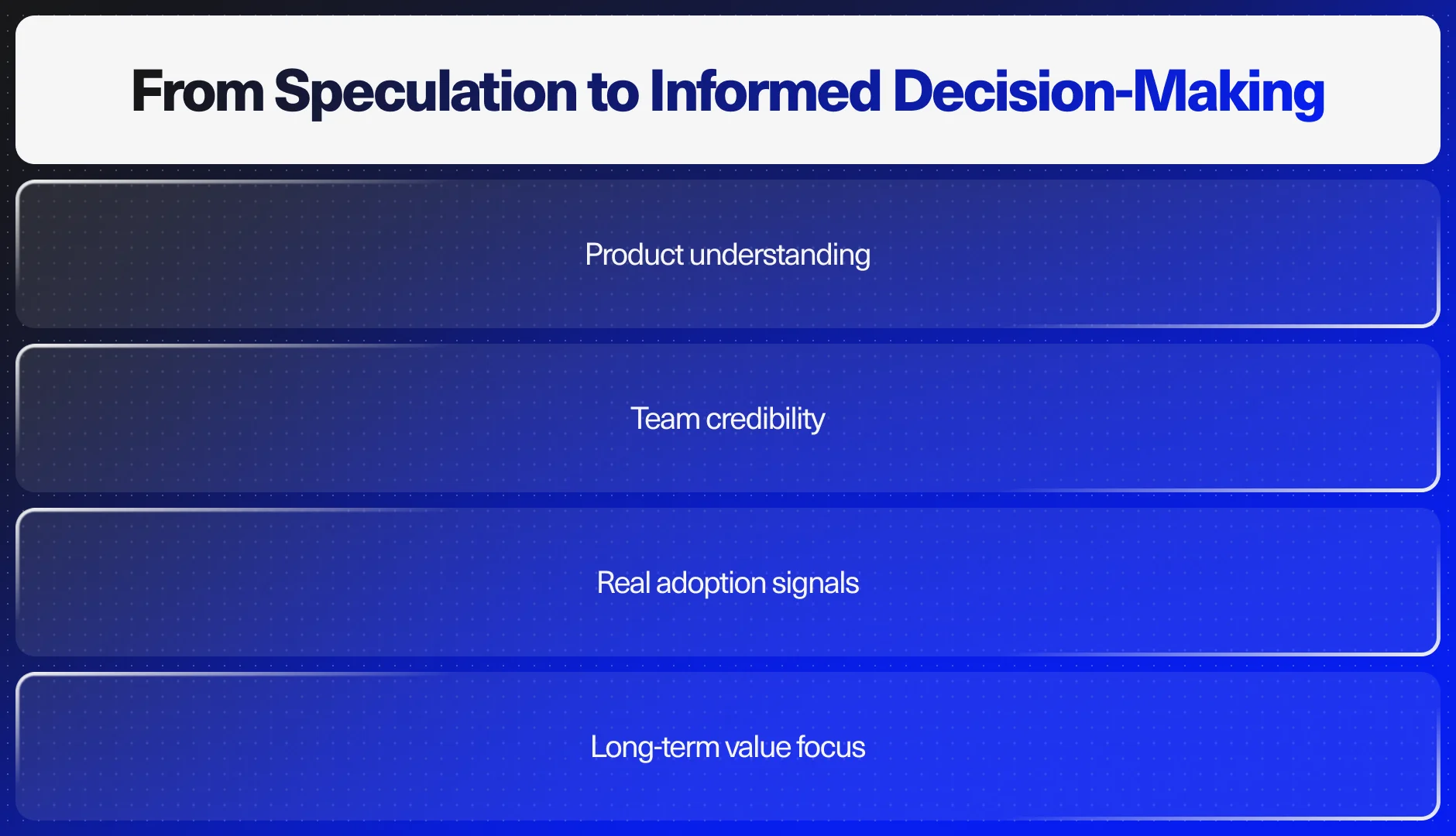 - Focus on real use cases instead of speculative upside
