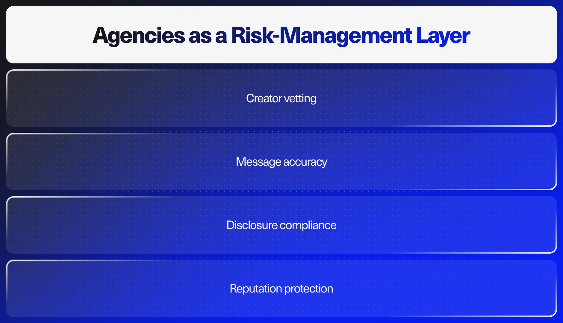 - The biggest risks: trust erosion, wasted spend, and regulatory issues (undisclosed paid promotions).